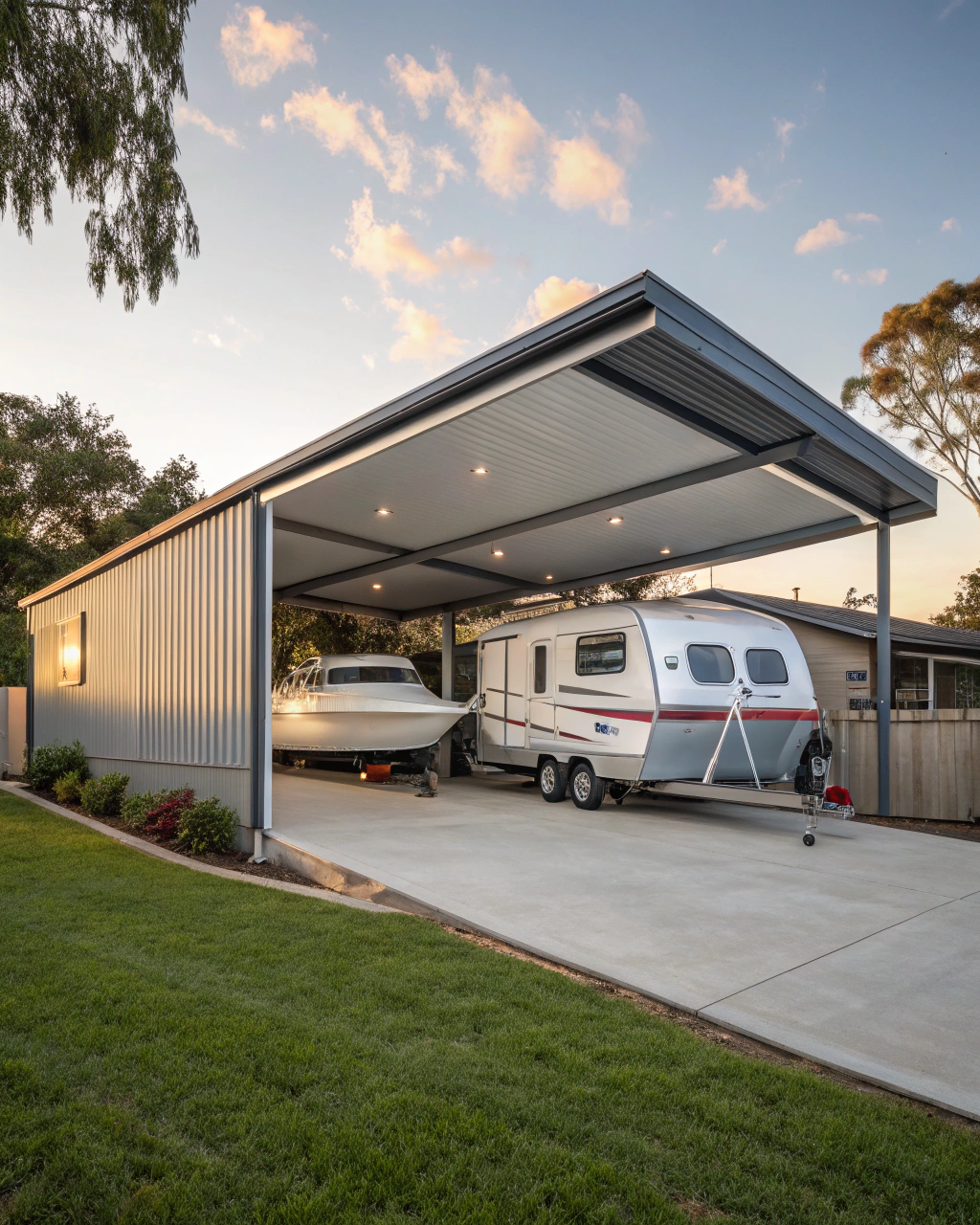 Boats are one of the most common. Newcastle’s proximity to the lake system, the harbour, and the coast means a lot of households have a trailer boat sitting exposed on the driveway for most of the year. Caravans are another — UV degrades seals, fades upholstery, and shortens the lifespan of a vehicle that represents a significant investment. Jet skis, ride-on mowers, trailers, and workshop overflow are all reasons homeowners extend their covered area beyond what a standard single or double-carport provides.